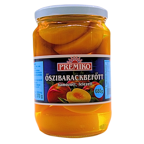 Őszibarackbefőtt hámozott, felezett Nettó tömeg: 680g Töltőtömeg: 370g Minimum rendelhető mennyiség: 1db (A kép csak illusztráció.)