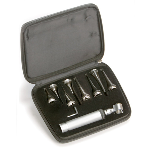 Termék jellemzői: - Otoscope set - fém fej és nyél - Xenon-halogen izzó - 8 db újrahasználható műanyag fültölcsér - elemes - hordtáskában - vásárolható hozzá nagyÍtó .
