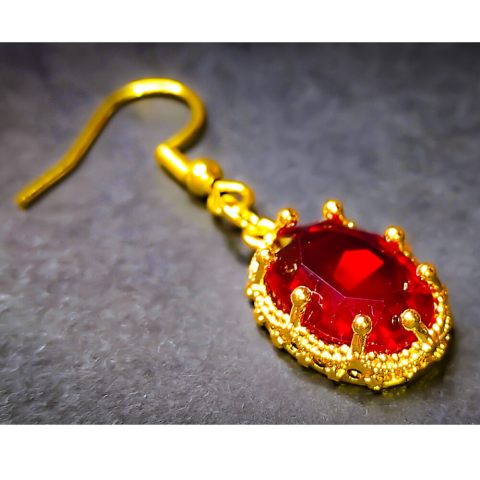 1 kép Ovális piros kvarc kristály fülbevaló, 1 pár