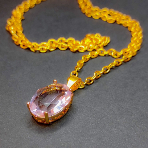 1 kép Ovális rózsaszín kvarc kristály medál lánccal
