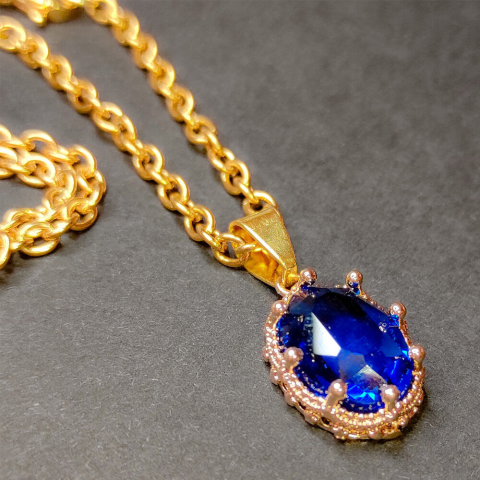 1 kép Ovális sötétkék kvarc kristály medál lánccal