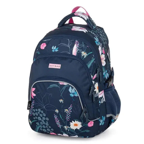 Tedd fel kérdésed a(z) OXY Scooler hátizsák, iskolatáska, 4 rekeszes, 43x32x20cm, Flowers, sötétkék, virágos termékről!