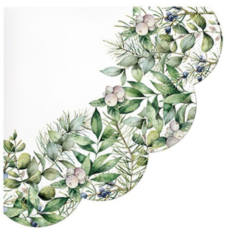 P.W.SDR232600 Winter Greenery rondo papírszalvéta 32cm,12db-os