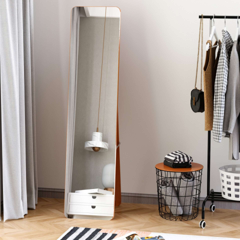 1 kép padló- és fali tükör, MDF / üveg, 43x37x156 cm, világos dió