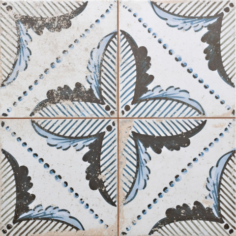 Padló Különböző alakú alapelemek vintage stílusban mérete 45x45 cm vastagsága 9,5 mm matt felülettel. Csak beltérbe alkalmas. Kis eltérésekkel a színárnyalatban, a felületi textúrában és a rajzban.PEI 4 – Erős kopásállóság - erősen igénybe vett területek - pl. folyosók, éléskamrák, teraszok, irodák