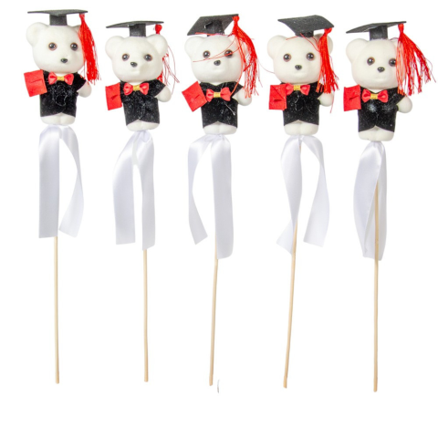 Pálcás ballagó sapis maci 5db/csom (db ár) dekorációs kellék 1 kép