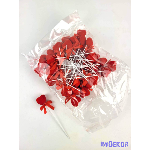 Pálcás szív betűző 50 db/csomag 11 cm - Piros Bársony