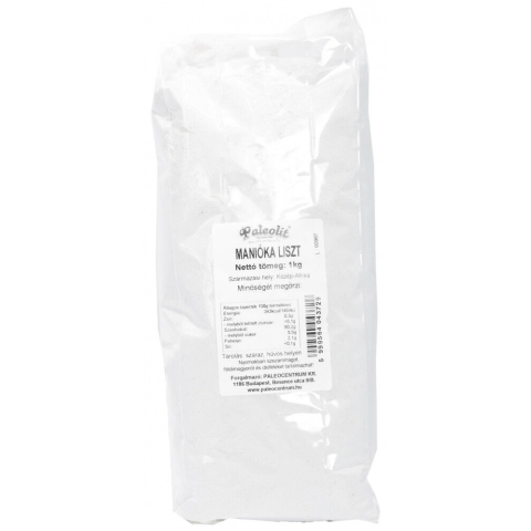 Paleolit Manióka liszt 1kg A szárított manióka gyökér finom porrá történő őrlésével készítik. Nem azonos a tápióka keményítővel, amit belőle vonnak ki hidrolízissel. Nagy a nedvszívó képessége, ezért a kenyérlisztbe keverve megelőzhető a vizes kenyérbé