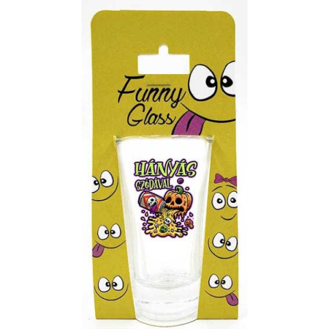 Humoros pálinkás pohár Halloween motívummal, ami biztosan mosolyt csal az arcokra. Kiváló ajándék azoknak, akik kedvelik a társaságot. Anyaga: üveg Űrtartalom: 75 ml