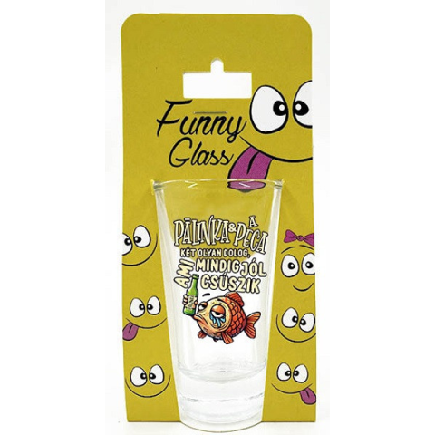 Humoros pálinkás pohár, ami biztosan mosolyt csal az arcokra. Kiváló ajándék azoknak, akik kedvelik a társaságot. Anyaga: üveg Űrtartalom: 75 ml
