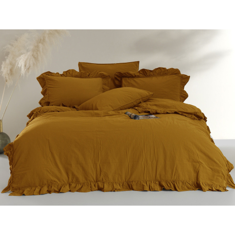 1 kép Pamut ágynemű 200x220 mustár fodorral egyszínű dobozban Kőmosott mustár
