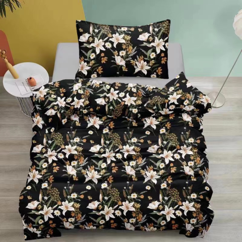 Pamut ágynemű LILIOM VIRÁGOK fekete lakástextília termékleírás