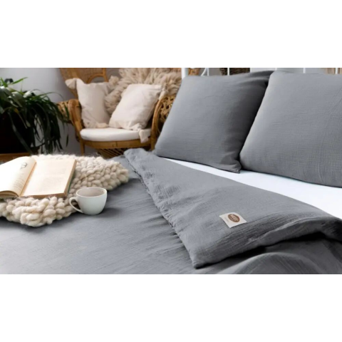 Puha Szürke Muszlin Ágynemű Garnitúra - 100% Pamut Kényelem ☁️ Élvezd a pihentető alvást ebben a puha és légáteresztő pamut muszlin ágyneműhuzat garnitúrában. A kétrétegű muszlin (double gaze) anyag a legfinomabb frottír érzetét kelti, ideális választ...