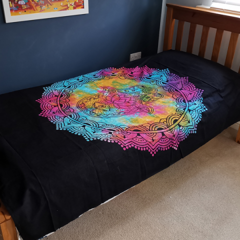 Nagyon szépen kidolgozott ágytakaró, ami akár faldíszként is használható. Tulajdonságok:méret: 130 cm x 200 cm. (1 személyes ágyra jó)Származási helye: India. (Indiában készültek és az AW-Artisan márka alá tartoznak.)