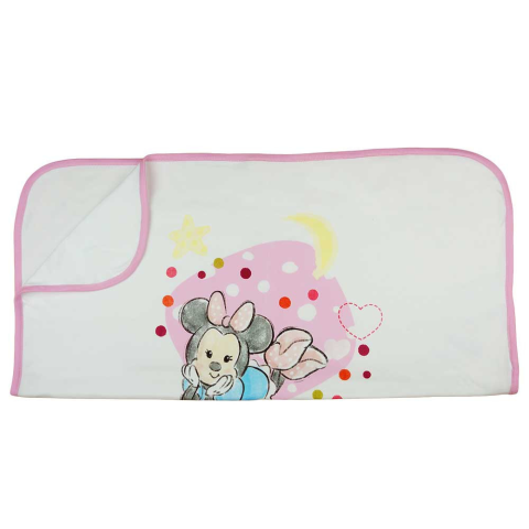 Ölelje körbe kisbabáját szeretettel és melegséggel ezzel a gyönyörű Minnie egér mintás pamut babatakaróval! Eredeti Disney termék, amelyen a cuki Minnie egér vidám arcát láthatjuk, így a picik álma is szórakoztatóbb lesz. A babatakar