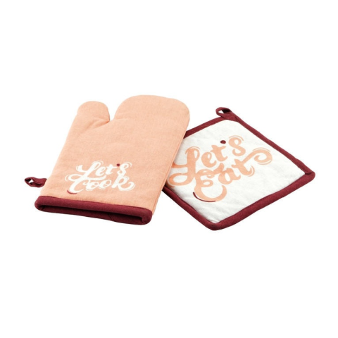 Méretei: Sütőkesztyű mérete: 18x31 cm, alátét mérete : 21x21 cm.