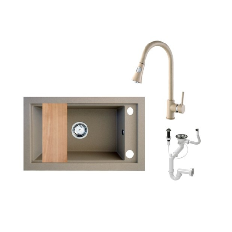 1 kép Panama P686-427B Gránit Mosogató + Kihúzható Csap + Deszka + Dugóemelő (bézs)