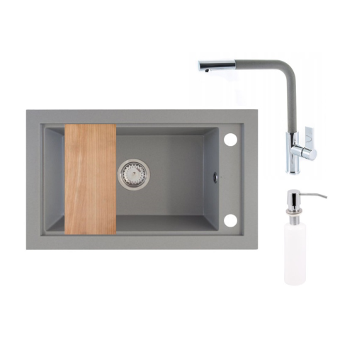 1 kép Panama P686-427S Gránit Mosogató + Kihúzható Linea Csaptelep + Adagoló + Deszka + Szifon (szürke)