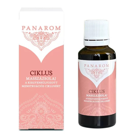 Panarom ciklus masszázsolaj, 30 ml - A Panarom Ciklus masszázsolaj a női test ritmusának támogatására született, hogy szabadon megélhesd a nőiességedet - A keverékben lévő illóolajok kémiai összetételüknek köszönhetően enyhíthetik a menstruáció előtti és