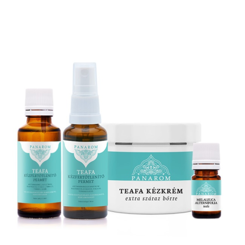 Csomag tartalma: 1.Teafa illóolaj* 10 ml Baktériumölő, gombaölő, vírusölő, parazitaölő illóolaj*. Általános frissítő hatása miatt nagyon sokoldalúan alkalmazható. 2.Teafa kézfertőtlenítő permet 30 ml A teafa illóolajos kézfertőtlenítő kiválóan fertőtlen