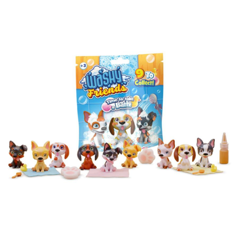 A Washy Friends kutyusok imádnak játszani - akár sáros időben is, ezért sáros bundával érkeznek meg a kis gazdikhoz. Így aztán elsőként a gyerekeknek meg kell fürdetniük a kiskedvencüket. És most jön a varázslat! Csak a fürdetés után derül ki, milyen színű a bundája a kutyusnak!
