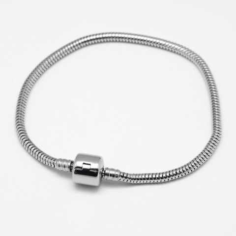 Pandora stílusú alap karkötő, rozsdamentes acél - 18 cm. Méret: 18 cm, charmok tehetők rá. Kiváló kivitelezés, jó minőségű anyag felhasználásával. Kb. 3 mm vastag, 18 cm hosszú, csat: 10x10 mm. Anyaga 304 rozsdamentes acél