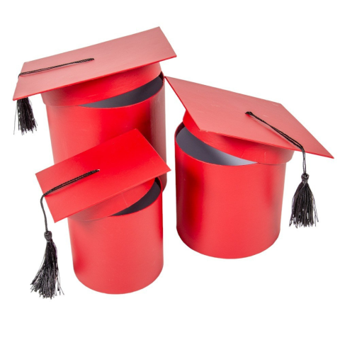 1 kép Papír doboz ballagási sapka vörös D17-15-12cm 3 db-os