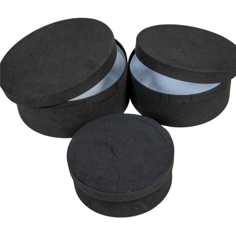 Papír doboz kerek bársony hatású fekete D20-18-15cm 3db-os