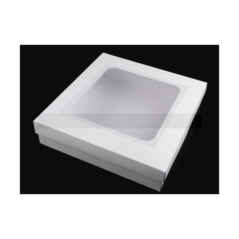 Kocká,s papí,r doboz ,tetejé,n á,tlá,tszó, nyí,lá,ssal. Ajá,ndé,kok csomagolá,sá,ra alkalmas. Tetszé,s szerint dí,szí,thető.A dobozt szé,tszedett á,llapotban adjuk(Tető - 47 x 47 cm, alsó, ré,sze - 60 x 60 cm). Egyszerűen ö,sszerakható,. A nyí,lá,s mé,rete 20 x 20 cm.A dobozt bontott á,llapotban szá,llí,tjuk (felső fedé,l -