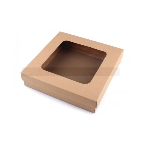 Kocká,s papí,r doboz ,tetejé,n á,tlá,tszó, nyí,lá,ssal. Ajá,ndé,kok csomagolá,sá,ra alkalmas. Tetszé,s szerint dí,szí,thető.A dobozt szé,tszedett á,llapotban adjuk(Tető - 47 x 47 cm, alsó, ré,sze - 60 x 60 cm). Egyszerűen ö,sszerakható,. A nyí,lá,s mé,rete 20 x 20 cm.A dobozt bontott á,llapotban szá,llí,tjuk (felső fedé,l -