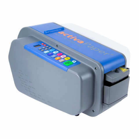 A gép adagolás közben vízzel nedvesíti a szalagot, ezáltal aktiválódik a ragasztóanyag. Az előre beállított szalaghosszt automatikusan levágja a gép, ragasztásra előkészíti. A ragasztó anyaga környezetebarát, vízbázisú, rendkívül erős tapadás