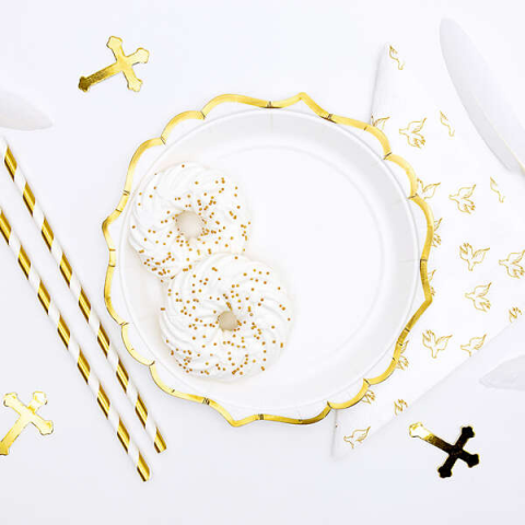 Papír tányér, fehér, arany szegéllyel, 18.5 cm party kellék 1 kép