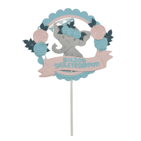 Papír torta dekoráció - Boldog születésnapot – Elefánt