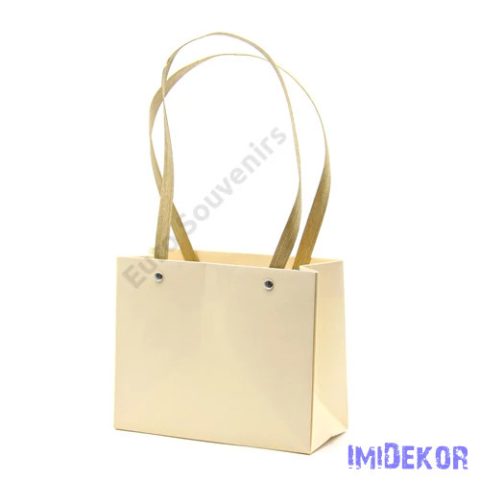 1 kép Papírfüles virágtáska 18x14,5x8cm - Krém