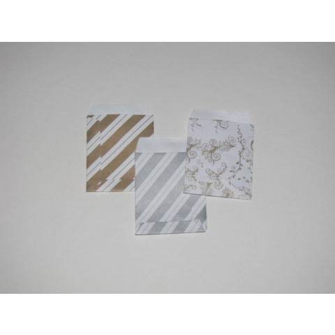 A papírtasak (papírzacskó) 5×6 cm méretben tökéletes választás ékszerek és bizsuk számára, de fénykép –és fotótasakként vagy ajándéktárgyak csomagolására is alkalmas. Többféle színben és mintázatban érhető el. Kézműves termékek kedvelt csomagolóanyaga. A mérete 5 x 6 cm, elsősorban kisebb tárgyak, ékszerek csomagolására használják. Egy csomag 100 db tasakot tartalmaz, természetesen nagyobb mennyiség is rendelhető. A papírtasak (papírzacskó) 5×6