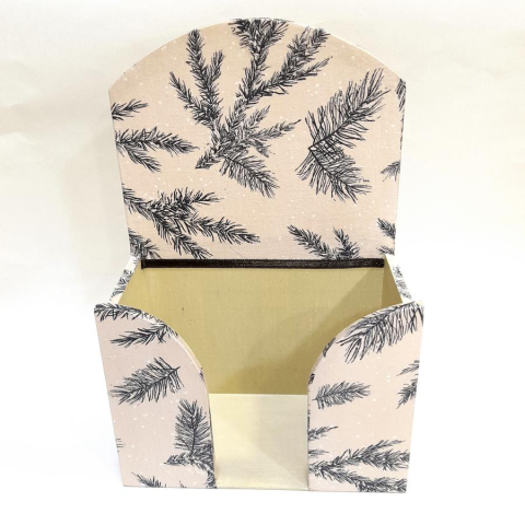 1 kép Papirzsebkendő-tartó, fenyőágakkal. Mérete: 13x19,5x7 cm