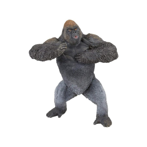Nagy hegyi gorilla, aki a mellkasát kopogtatja! A Papo hegyi gorilla 50243 egy óriás emberszabású majom, ami az esőerdőkben él. A gorilla az egyik legnagyobb szárazföldi emlősállat, a figura műanyagból készült, és a felülete kézzel festett. A gorilla együtt használható más Papo állatfigurákkal, játékkészletekkel is. A Papo hegyi gorilla 50243 méretei: 10 x 5 x 12 cm.