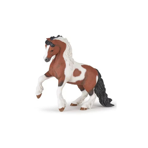 Korosztály: 3 - 6 év Az Irish cob, egy Brit-szigeteken kialakult lófajta, melyet csak 1996-ban törzskönyveztek először. Jellegzetes, tarka színű, széles patájú, tökéletes kocsiló. Erős, intelligens, tanulékony, engedelmes, izmos és rendkívül kitartó. A Brit-szigeteken élő roma közösségek státusszimbóluma volt.A Papo márka élethű, részletgazdag ábrázolással adja
