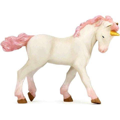 Hófehér lófigura, rózsaszín sörénnyel! A Papo unikornis 39078 egy mesebeli ló, akinek aranyszínű szarv díszíti a homlokát. A paripa hátára fel tudsz ültetni egy tündért vagy egy hercegnőt, a figura műanyagból készült, és kézzel van festve. A Papo unikornis 39078 együtt használható más Papo játékfigurákkal, készletekkel is. Az egyszarvú méretei: 11 x 4 x 8 cm.