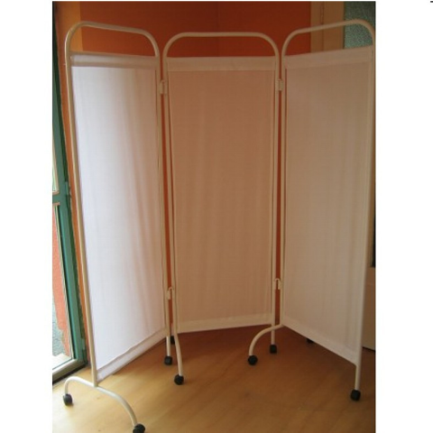 Termék jellemzői. - felülete színterezett acélváz - 3 elemes - fehér vászonnal, - a vászon tépőzáras, könnyen leszedhető, 90 fokban mosható - görgős Mérete egy elemnek: szélessége: 60 cm, magassága: 180 cm. .
