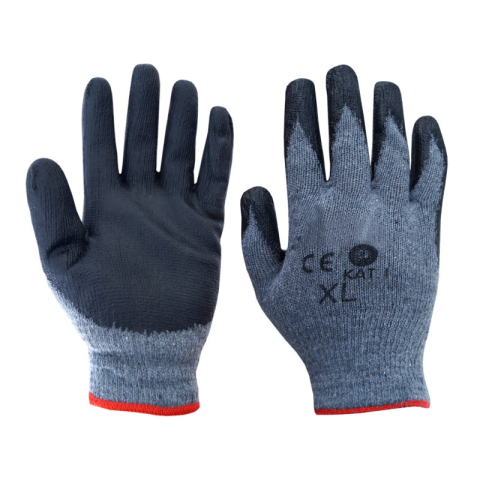 Közepes méretű munkavédelmi kesztyűAnyaga: cérnaTenyér részen csúszásgátló gumi betétek