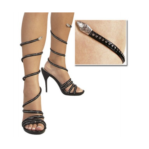 - Fekete strasszokkal díszített, spirálos bőr pántokkal. Talp: 1cm, sarok: 12cm. Felsőrész: szintetikus lakk. Méretek: 36-42