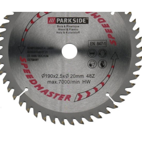 Parkside 48 fogas körfűrészlap . Méret: 190×2.5x20mm 48Z max. 7000/min Ezekhez a Parkside körfűrészekhez passzol: PHKS1350A1, PHKS1350B2, PHKS1350C2, PHKS 1350 A1, PHKS 1350 B2, PHKS 1350 C2