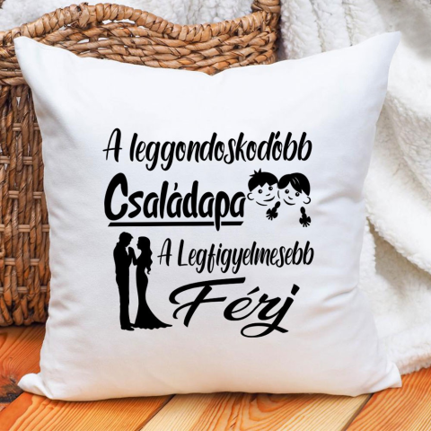 Párna apának, apák napi ajándék, családapa és férj. Ajándék a leggondoskodóbb családapának és a legfigyelmesebb férjnek. Párna amit évfordulóra, de apák napjára is átadhatsz, mindkét alkalomra tökéletes választás. Válaszd ki a megfelelő színt, mi pedig pá
