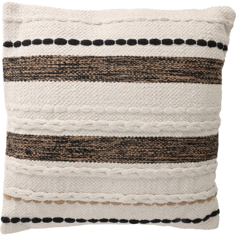 A párna természetes színekkel, köztük visszafogott barna árnyalatokkal és elegáns fekete csíkos mintával csábít el, amely stílusos megjelenést sugároz. 500 gramm poliészter bélésének köszönhetően ez a párna optimális kényelmet és támaszt nyújt. A beépített cipzárral könnyen eltávolítható a huzat a tisztításhoz és ápoláshoz. Minden párna vákuumcsomagolásban van a csomagban, ami nemcsak megkönnyíti a szállítást, hanem biztosítja, hogy tökéletes á