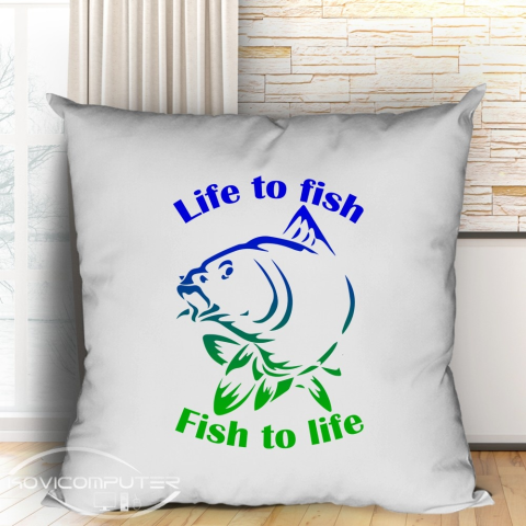 Párna horgásznak, Life to fish-Fish to life. Ajándék horgászoknak, pecásoknak praktikus meglepetés a vízpart szerelmeseinek. Rendelj horgásztársadnak egy igazi pecás párnát születésnapjára, névnapjára. Huzat és párnabelső egyben. A párna mérete 40x40 c