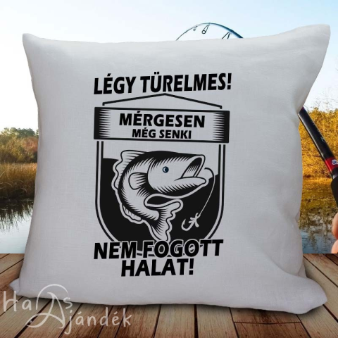 Párna horgászoknak, mérgesen nem lehet halat fogni. Légy türelmes, mérgesen még senki nem fogott halat feliratos párna. Meglepetés születésnapra, névnapra, karácsonyra a legnyugodtabb horgásznak vagy éppen a legtürelmetlenebb pecásnak jó tanácsként. A fel