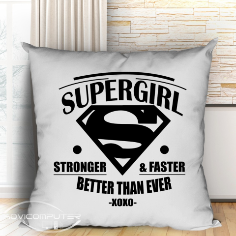 Párna nyomtatás, Supergirl párna. Erősebb, gyorsabb, jobb mint, valaha vagyis igazi szuper lány. Lepd meg egy igazi trendi párnával barátnődet. Válaszd ki a párna hátoldal színét is Te! A párna mérete 40x40 cm, a huzat praktikus húzózárral ellátott, íg