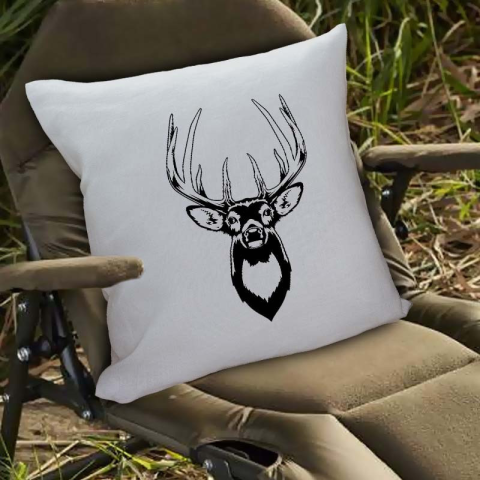 Vadász meglepetés, szarvasos párna. Egyedi rajzolt, fekete szarvas motívummal díszített párna. Visszafogott, dekoratív párna minden alkalomra különleges ajándék lehet vadász rokonodnak. A mintát kérheted fehér vagy színes párnára is aminek a nyomtatott f