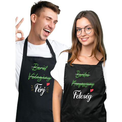 Páros kötények, kötény házasoknak. Ajándék évfordulóra vagy akár nászajándéknak is tökéletes friss házasoknak. Barát, vőlegény, férj kötény férfiaknak, illetve barátnő, menyasszony, feleség feliratos kötény nőknek tökéletes párosítás minden jeles alkalomr